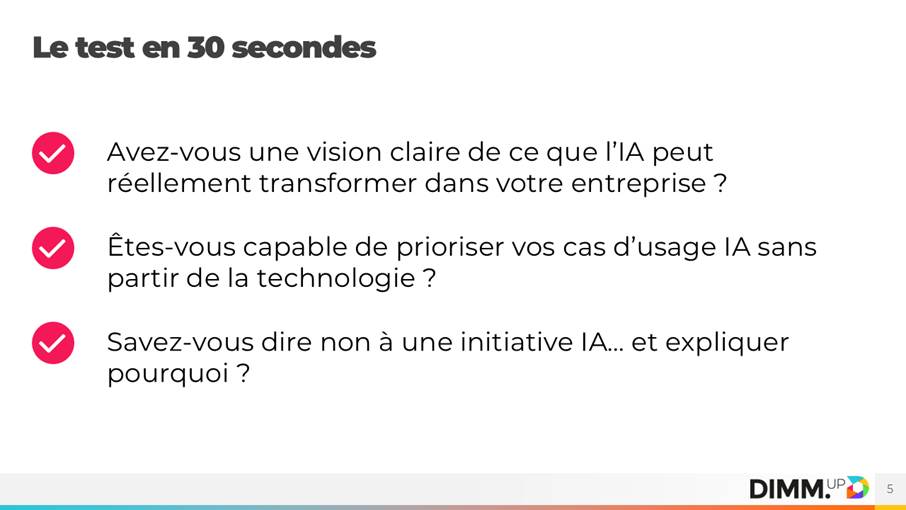 Le 3 avril 2025, j’intervenais lors d’un webinaire organisé par DIMM.UP en partenariat avec Zeebra, sur le thème du diagnostic IA readiness.